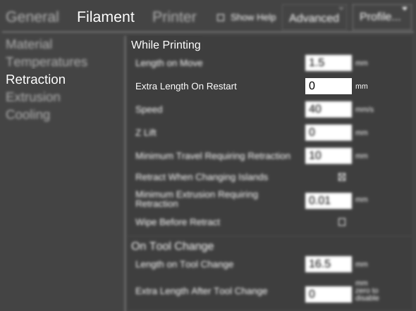 Maximum length of filament to extrude after a complete retraction (in addition to the re-extrusion of the Length on Move distance).
