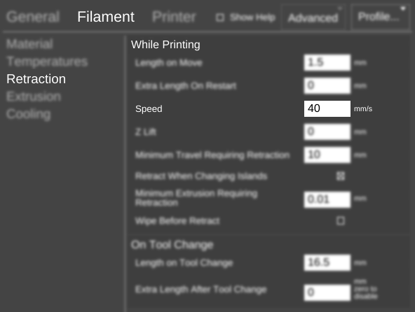 In this example, filament will retract and re-extrude at 110 mm/s until the next print move.
