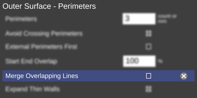 A screenshot of the Merge Overlapping Lines setting as seen in MatterControl's SETTINGS pane.