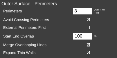 Outer Surface - Perimeters is a section of the Layers / Surface sub-category in General settings which deals with the outer shell of the print.
